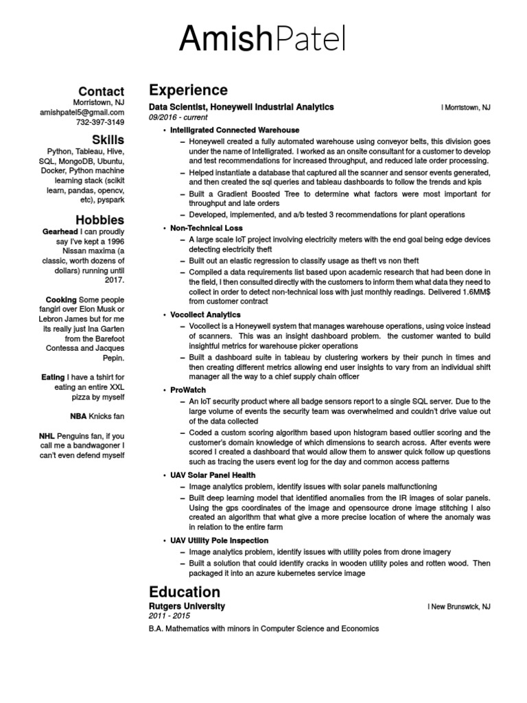 Amish Patel Resume Analytics Internet Of Things