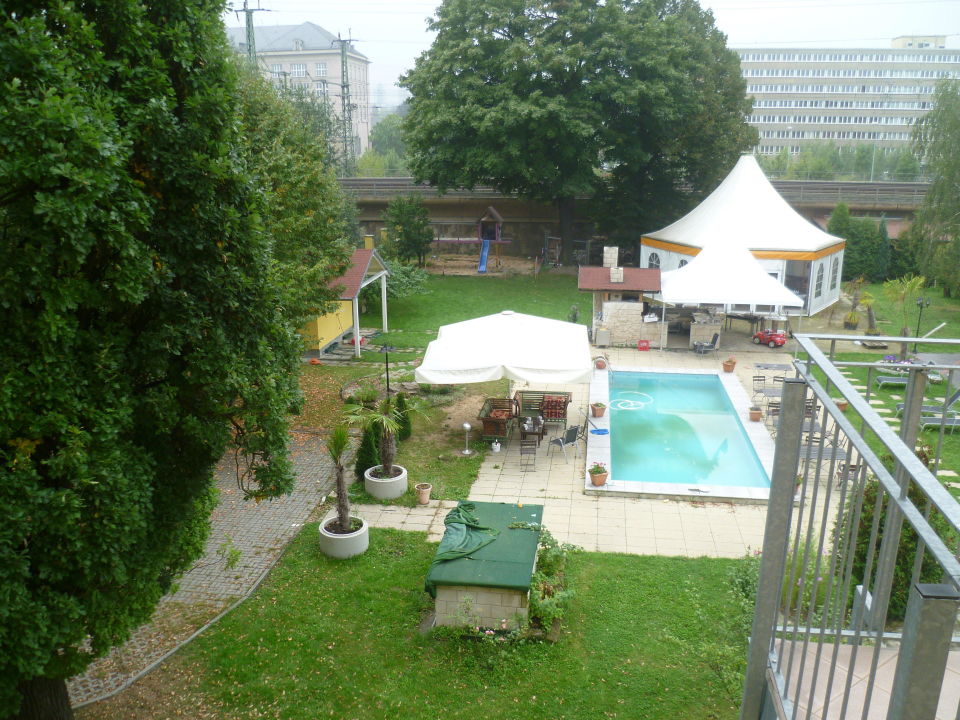 Blick Auf Garten Pool Und Eisenbahn Villa De Baron Dresden Holidaycheck Sachsen Deutschland